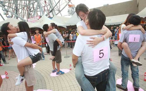 组图:农历七夕催情 台湾各地情侣拥吻宣示爱情