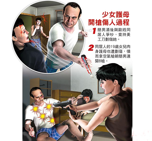 少女护母开枪伤人过程。图片来源:台湾媒体
