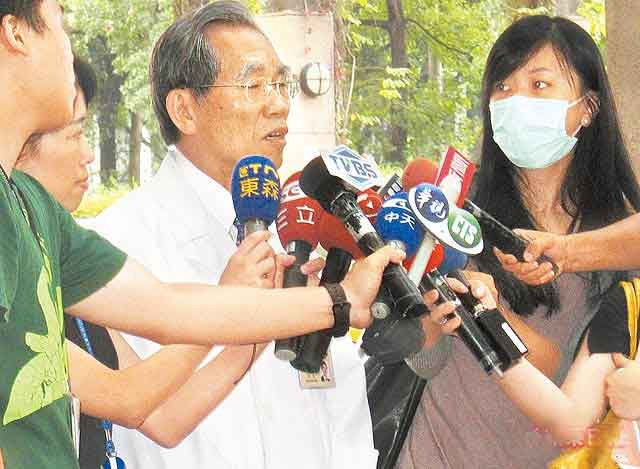 台大医院发生爱滋器官移植疏失,院长陈明丰(中)昨二度出面向社会道歉。图片来自台媒
