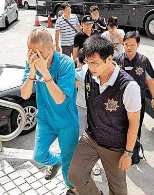 彰化警方将诈骗集团主嫌曾希哲(左一)等带回警局侦讯。图片来自网络