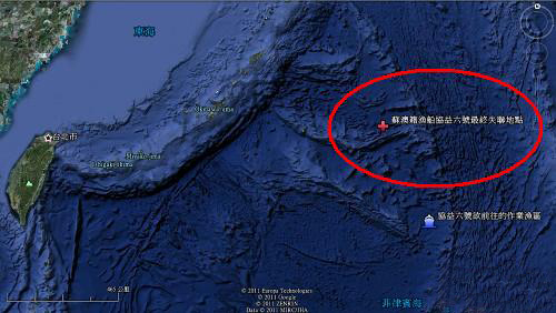 “协益6号”失联位置图。图片来源:台湾媒体