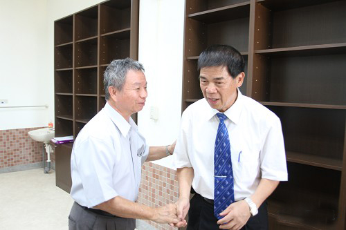 金门大学校长李金振向杨志良致意。图片来源:台湾媒体