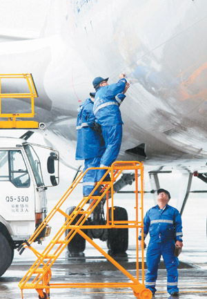 华航修护人员初步检查,为求安全,决定改由另一架客机执勤。机长向已经登机的二百七十五位旅客广播,请旅客下飞机休息,将延后起飞。