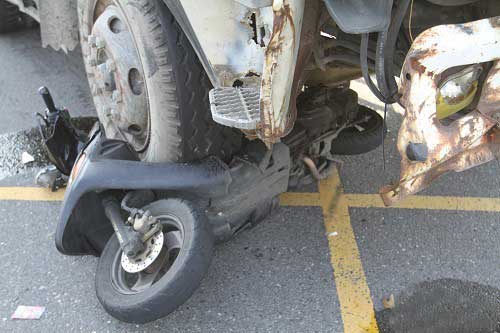 中国台湾网11月25日消息 据台湾媒体报道,今天下午2时,台南一名29岁吴姓妇人,骑摩托车载7岁儿子出门送饮料,途经台南市海佃路二段与安吉路一段口,被由王姓男子(59岁)驾驶的大货车撞击,吴妇下肢被货车辗过,儿子左大腿骨折,摩托车被拖行十几米,王男被民众拦下停车,才知闯了大祸,有关肇事原因警方调查中。