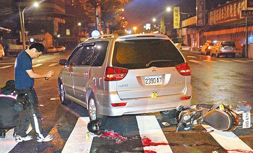 高中女生吕思颖骑摩托车追撞休旅车后七孔流血身亡,在地上留下大摊血迹。(图片来源:台湾媒体)