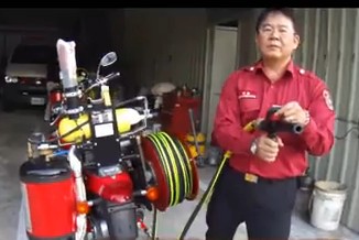 据台媒了解,这款消防摩托车尾部配备卢森堡制的压缩式空气泡沫混合灭火系统,系统左边是35公升装的泡沫水溶液桶,中间是加压设备,右边是50米长水带,因有高压设备,消防泡沫水覆盖效果比一般消防车还好。(中国台湾网 张真瑜)