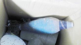 2日警方接获报案,新北市新店区文化路一栋老旧公寓有一枚未爆炮弹,住顶楼加盖黄姓住户(38岁)坦承迫击炮弹是已过世3年的父亲遗物,因住家整修,发现杂物间一个纸箱内有迫击炮弹,暂时摆放楼梯间走道,造成邻居惊吓感到抱歉。