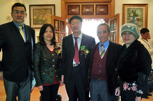 2011年12月18日在五桂楼前举行的揭幕仪式,有数百位台湾当局领导人、文化精英,社会贤达人士出席。下午2点半,台湾民意机构负责人王金平率先到达会场,他与笔者及来自北京的一行人握手合影,并为修复五桂楼的技师专家颁发奖状、奖金,还在会上讲了话,他高度评价雾峰林家对台湾近代史所作的贡献和修复五桂楼的历史意义。这时,台中市长胡志强也赶来参加五桂楼修复落成剪彩仪式。代表雾峰林家致词的是林献堂的孙媳、明台高级中学董事长林芳媖女士,她向社会各界人士在修复五桂楼中给予的巨大支持表示钦佩,同时对参加落成典礼的贵宾表示感谢。她特别对从北京赶来参加盛典的梁旋女士说:“100年前的1911年,你的祖父梁启超住进五桂楼,和我的公公林献堂在这里共谋抗日大计:100年后的2011年你又来到五桂楼和我们一起重温历史,这是多么值得回味和纪念的事情。一座五桂楼承载了两岸人民的深情,我们是一家人啊!”