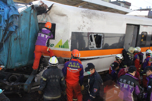 中国台湾网1月17日消息 据台湾《联合报》报道,台铁太鲁阁号17日上午8时42分行经桃园埔心站时,有砂石车闯越平交道,造成太鲁阁号与砂石车对撞,列车前三个车厢出轨,砂石车则被拖行近500米,才在埔心火车站停下,目前共有8男14女、共22人受伤。不幸的是,太鲁阁号列车司机蔡崇辉不幸在送医途中伤重不治,砂石车驾驶则被警方带到杨梅分局侦讯中。