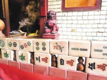 中国台湾网1月30日消息 据台湾《联合报》报道,台南市盐水区有座“麻将庙”,由瑕疵的5000张麻将牌砌成,供奉财神爷,春节期间许多游客慕名而来,称奇之余不忘求财。