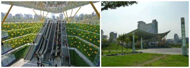 高雄地铁中央公园站的设计理念则出自英国设计师理查·罗杰斯的巧思,其白色飞扬的雨庇搭配宛如向日葵田的绿化植栽,让整个车站充满活力,广受好评,居全球最美地铁站排行第4名。