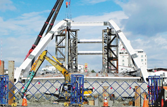 台东县议员反对快完工的钢骨大桥命名为“树菊桥”,县长黄健庭昨决定沿用丰里桥旧名。(图片来自台湾媒体)