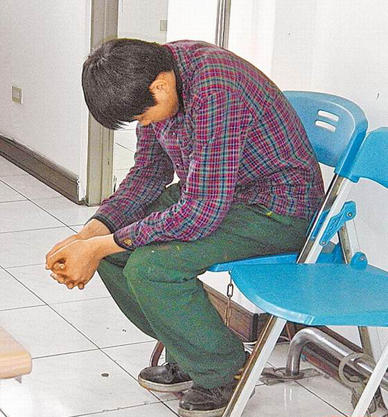 黄姓少年被带回警局后,低头坐着不发一语。(图片来自台湾媒体)