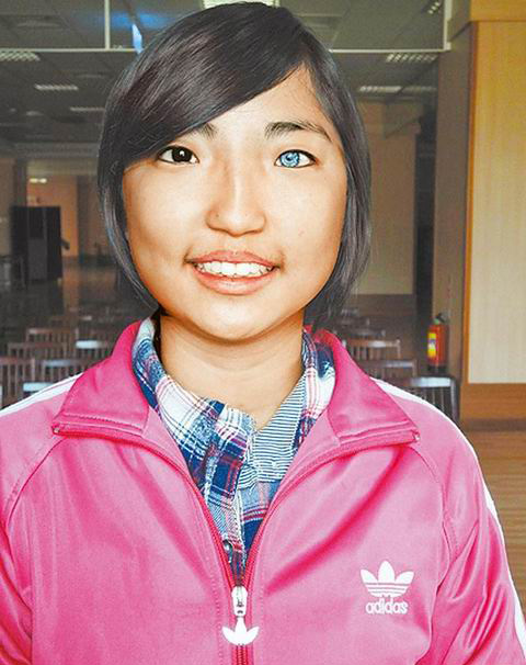 陈苇庭从小就有听力障碍,左眼虹膜呈蓝色。(图片来自台湾媒体)