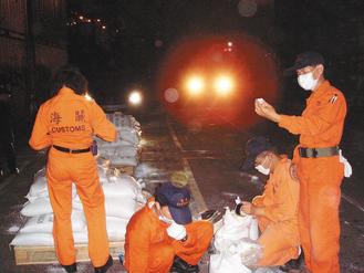海关工作辛苦,职司关税稽征、查缉走私,常在码头货柜、堆高机间跑来跑去。图为海关人员夜间查获K他命等走私毒品。(图片来源:台湾《联合报》)