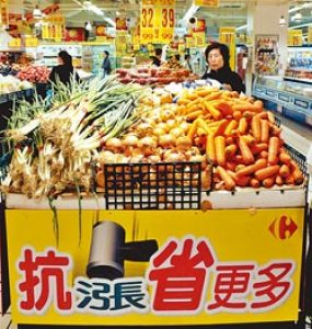 台当局“行政院消保处”协调台湾7家卖场业者一起推出“抗涨专区”。(图片来源于:台湾《中国时报》)