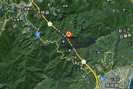 台湾雪山坠道南下27公里处(红框处)发生火烧车意外。(图片来自网络)