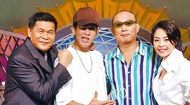 郭桂彬(右二)因澎恰恰(左)光盘案恐吓取财入狱。(图片来自台媒)