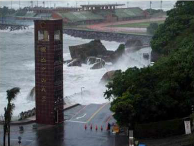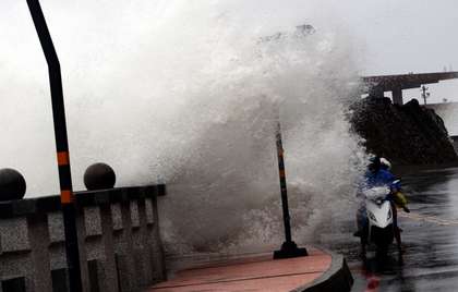 “泰利”带来的大浪冲击防护堤。图片来自台媒