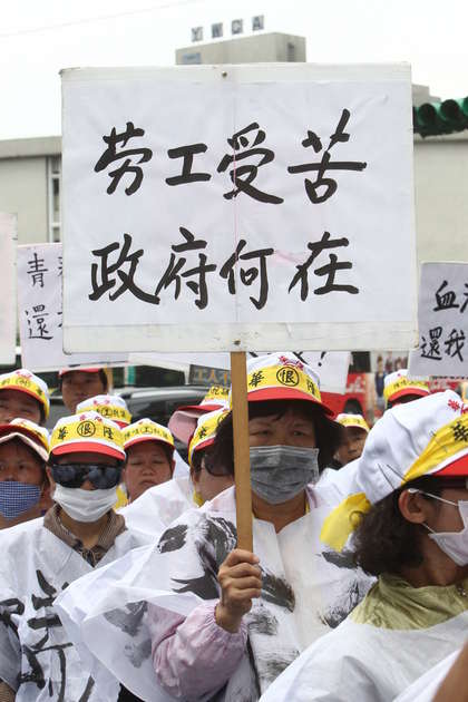 台湾华隆纺织厂员工台北抗议现场。图片来自台媒