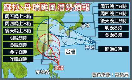 另外,位于日本东南方海面的热带性低气压昨晨也增强为第10号台风丹瑞(Damrey,柬埔寨命名,原意为象),预估此台风对台湾没有直接影响,因相距2500公里,现阶段不会有交互作用。(中国台湾网 杜美莹)