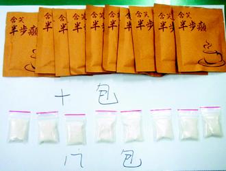 警方表示,“含笑半步癫”是将K粉及摇头丸混合研磨成粉末,再掺入冲泡咖啡粉,制成速溶包,加入水、饮料、酒类服用后,使用者先会变得很high,接着出现幻想、幻听,之后会变得瘫软无力。