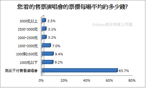 调查结果显示,民众平均购买的票价,以新台币1000元以下、1000至1500元两种票价最能接受,对于售票演唱会的参与,追求的不是越近越贵的票价,而是能跟着欢唱如大型KTV的听觉享受。(中国台湾网 周剑)