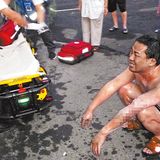 被烧兄弟,痛苦蹲在地上。图片来自台媒