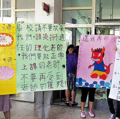 100多名家长昨天串联抗议,要求学校立即撤换老师。(图片来自台媒)