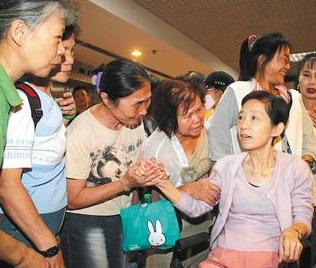 前台湾地区领导人陈水扁到台北荣总戒护就医,陈水扁妻子吴淑珍(右)北上探视。图片来源:台湾《联合报》