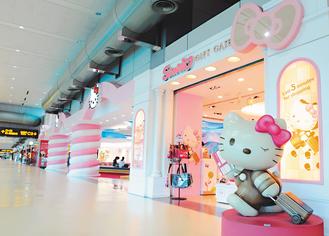 据台湾《联合报》报道,台湾桃园机场靠着Hello Kitty入选全球十大友善机场。桃园机场除了有Hello Kitty主题候机楼、游乐区,也有Hello Kitty育婴室和电话亭,甚至有Hello Kitty太阳饼、凤梨酥和巧克力等限量商品。
