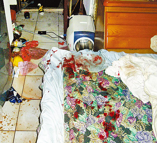吴男挟持、刺伤儿子的现场血迹斑斑。(图片来自台媒)