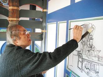 最后作画身影 彩绘大师陈寿彝今年初为顶新集团彰化祖厝彩绘留下的身影,也是他留在民间最后的创作。图片来源:台湾《联合报》