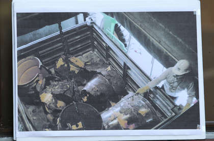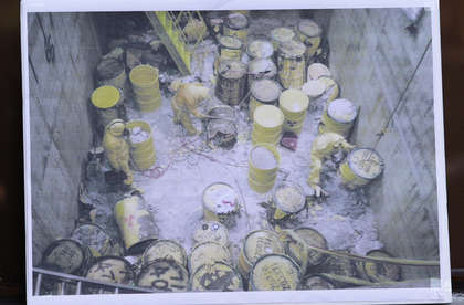影片拍摄到部分核废料储存桶被严重腐蚀,甚至已经破裂,周围环境看起来相当通风,没有负压处理,也没在密闭的空间,这种情况下,只要风一吹,粉尘便四处飘扬,一旁工人直接暴露在辐射危险之下。不过,蔡春鸿说,厂区一直都配有负压设备,可能是摄像机没有拍到。