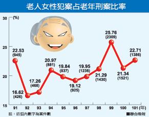 台湾老年女性犯罪比率图(图片来源:台湾《联合报》)