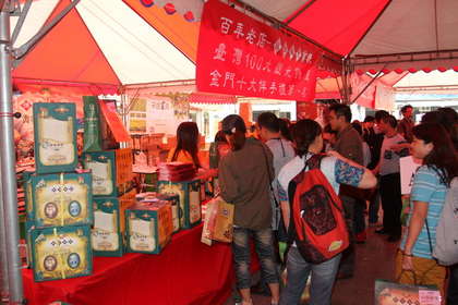 今天抵达金门的大陆游客团参加旅行社安排的“活动市集”,金门特产贡糖及凤梨酥等名产,几乎瞬间都被秒杀。(中国台湾网 焦源源)