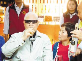 李登辉一口喝下3杯草莓酒。图片来自台湾《联合晚报》