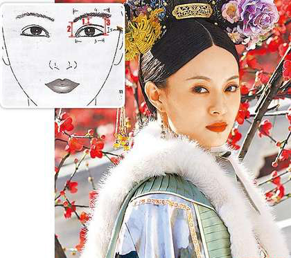 饰演甄嬛的孙俪(右图)拥有电眼,成为整形范本。医师建议眉、眼距离比例,自眼头至眼尾为2比1比3(上图)。图片来自台媒