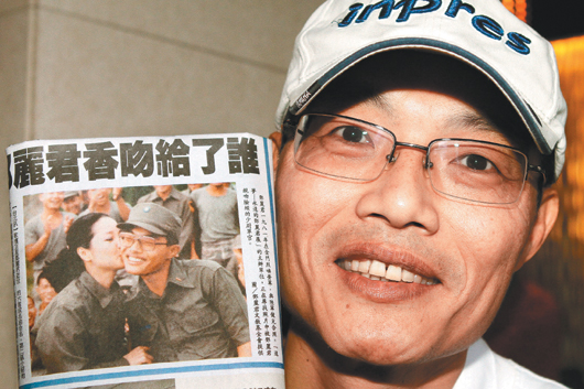 当年幸运被邓丽君献吻、五十三岁的薛进友昨天现身,当年他还只是21岁的小伙子。图自台湾《联合报》
