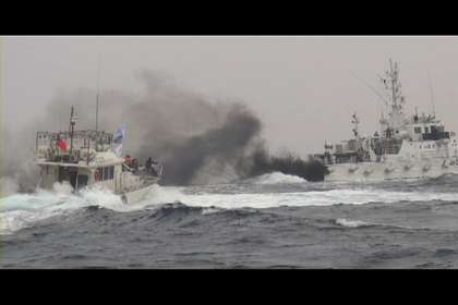 中国台湾网1月24日消息 据台湾媒体报道,今天凌晨1时46分,台湾保钓人士带着一尊大甲妈祖神像,搭乘“全家福”号渔船从新北市深澳渔港出发,10时32分进逼钓鱼岛28海里处时,遭日舰喷水柱,甚至排放黑烟、造浪等方式驱赶,台湾舰艇上前阻挡,也以水柱反击。