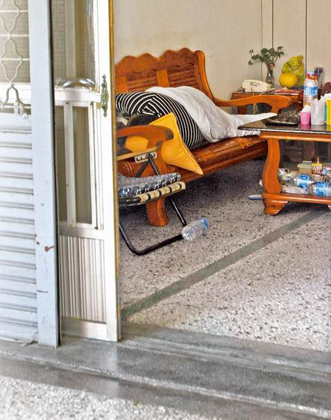 曾建隆躺在一楼木椅上睡觉,却因哥哥烧炭,一氧化碳中毒身亡。(图片来自台媒)
