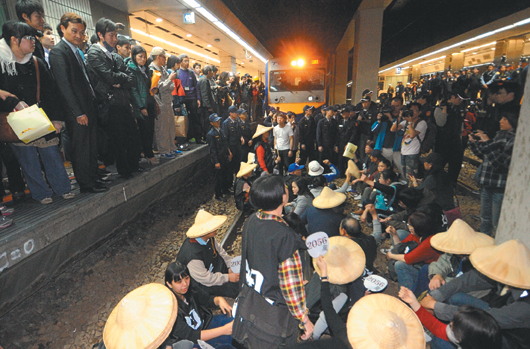 据台湾《联合报》报道,昨晚7时40分,近200名劳工“攻占”台北火车站第3月台后,数十位年长劳工于8时许火车进站时集体跳下月台卧轨。晚间近9时,台北铁路警察驱离轨道上的抗议者,列车逐渐恢复通行。不过,台北站第3月台上的抗议者直到晚间10时58分才被清场。据台铁估计,昨晚因劳工抗议活动,共有40列次火车晚点,延误超过10600名旅客。