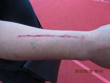据台湾媒体报道,新竹县一名83岁曾姓男子,今天早晨7点多骑脚踏车到新竹灯会美食区,趁警卫不注意时,抽走甘蔗摊位的一枝甘蔗,折成两段放上脚踏车准备离开,被林姓警卫发现阻止,他竟拿出藏在口袋内的水果刀挥舞,将警卫的右手臂划出一道长约20厘米伤痕,随后另位警卫及时赶到,2人合力压制曾男将他报警法办。