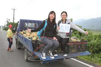 广州卢姓姐妹一路搭便车环台,计划吃遍台湾夜市美食。(图片来自台媒)