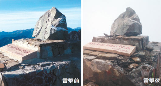台湾玉山主峰石碑本月4日因雷击严重破损。(来源:台湾《联合报》)