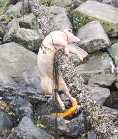 厦门环岛路黄厝沙滩经常可看到死猪尸体,并发出阵阵恶臭,现场处理的环卫工人也透露,分析是从南方龙海等地随着海水漂流而来。