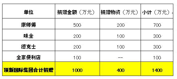 顶新国际集团支援震灾投入一览。(数据由顶新国际集团官方提供)