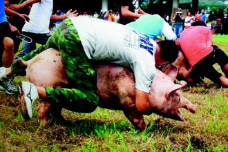 台湾少数民族在祭典中的“抓鸡”与“抓猪”。图片来自台湾《联合报》