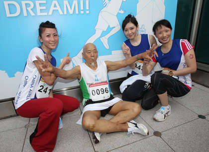 高龄96岁的彭宏年抵达终点时,赢得全部参赛者的热烈掌声,连在一旁参赛的空姐团也争相与他合照。彭宏年稍微休息之后接受访问,他说平常就有运动的习惯,每一届都会来参加,跑完的感觉“当然很累啊!”