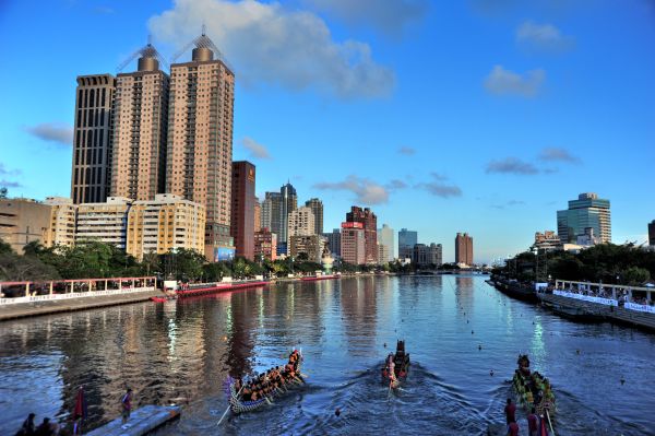 今年高雄市的端午龙舟赛依循以往在爱河水域以及林园区的中芸渔港两地同时举行。今年爱河龙舟赛参赛队伍更创新高,共134支队伍、超过3000人参赛。参赛队伍聚集在河畔整队欢呼,展现旺盛气势,而三度组队来台参赛的姐妹城市西雅图,也以一首《高山青》为队员壮声势。